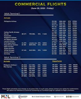 (Eagle News)–The Manila International Airport Authority has released its list of operational commercial flights.