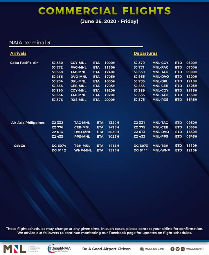 (Eagle News)–The Manila International Airport Authority has released its list of operational commercial flights.