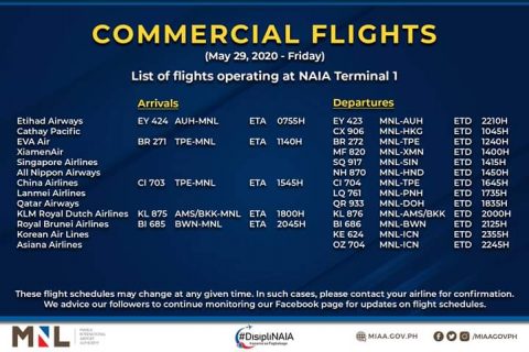 (Eagle News)–The Manila International Airport Authority has released its list of operational commercial flights.