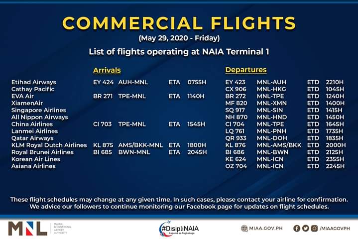 (Eagle News)–The Manila International Airport Authority has released its list of operational commercial flights.