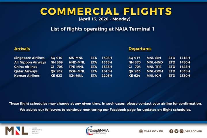 (Eagle News)–The Manila International Airport Authority has released its list of operational commercial flights.
