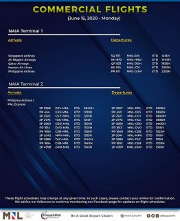 (Eagle News)–The Manila International Airport Authority has released its list of operational commercial flights.