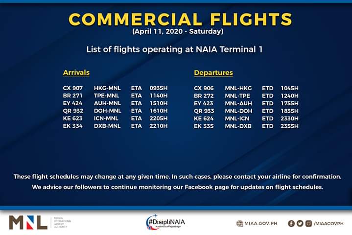 (Eagle News)–The Manila International Airport Authority has released its list of operational commercial flights.