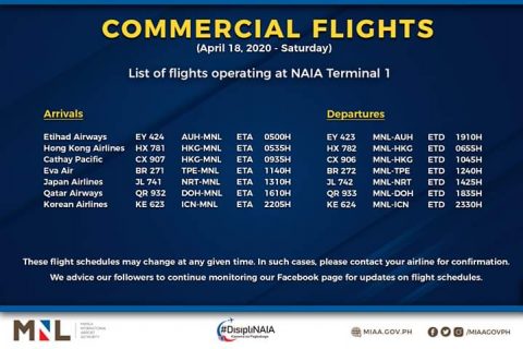 (Eagle News)–The Manila International Airport Authority has released its list of operational commercial flights.