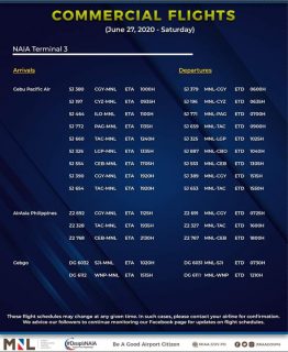 (Eagle News)-The Manila International Airport Authority has released its list of operational commercial flights.