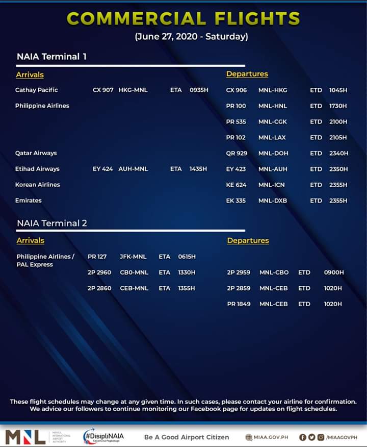 (Eagle News)-The Manila International Airport Authority has released its list of operational commercial flights.