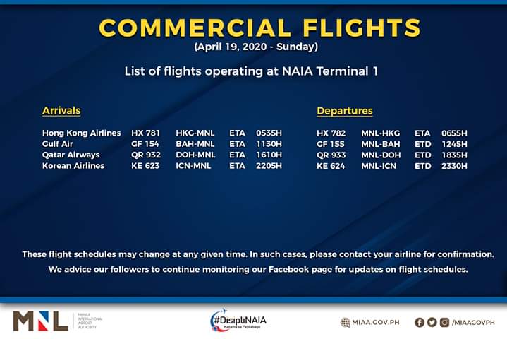 (Eagle News)βThe Manila International Airport Authority has released its list of operational commercial flights.