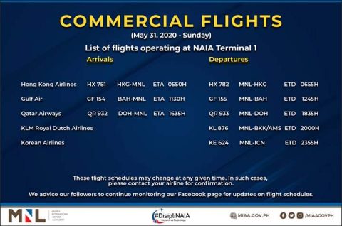 (Eagle News)–The Manila International Airport Authority has released its list of operational commercial flights.