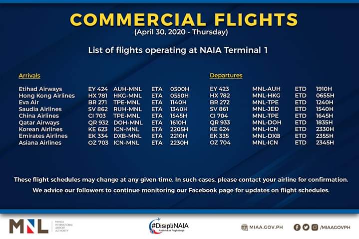 (Eagle News)–The Manila International Airport Authority has released its list of operational commercial flights.
