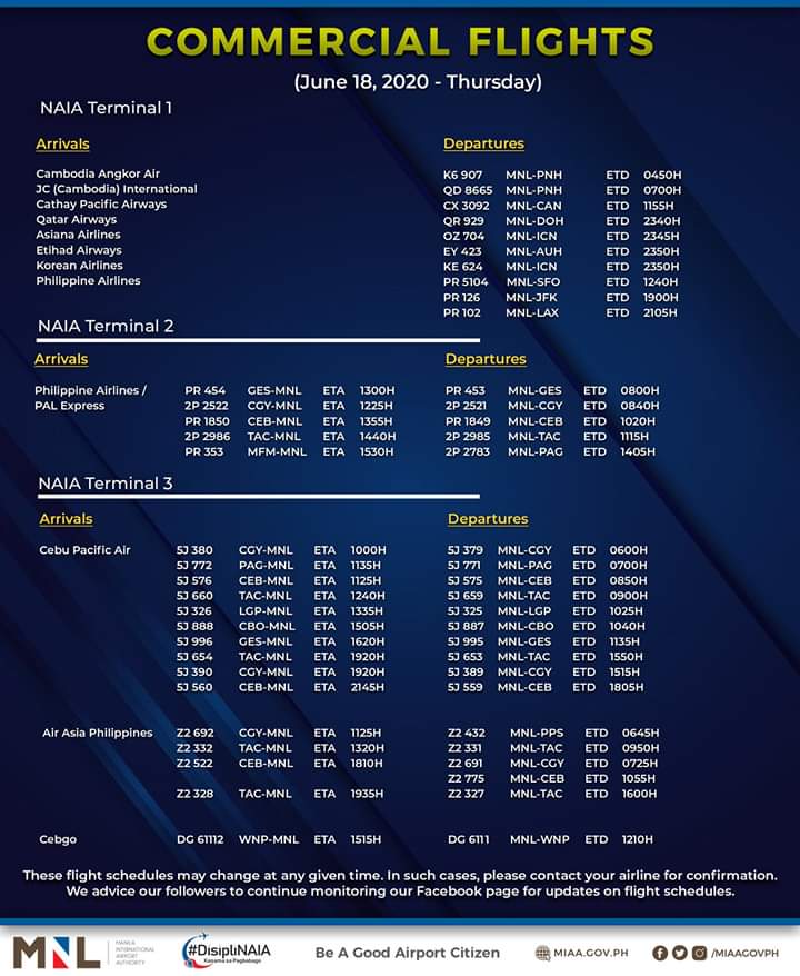 (Eagle News)–The Manila International Airport Authority has released its list of operational commercial flights.