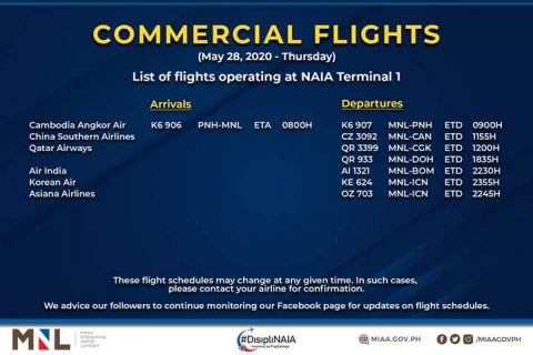 (Eagle News)–The Manila International Airport Authority has released its list of operational commercial flights.