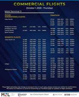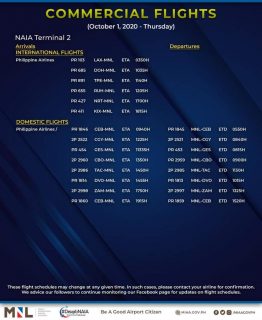 (Eagle News)–The Manila International Airport Authority has released its list of operational commercial flights for Thursday, Oct. 1: