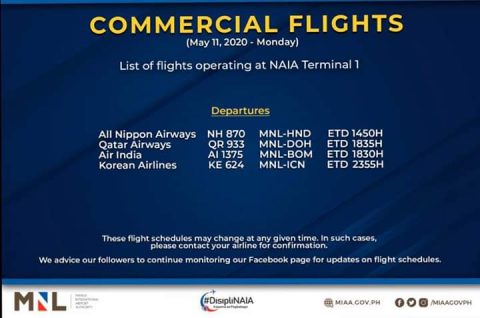 (Eagle News)–The Manila International Airport Authority has released its list of operational commercial flights.