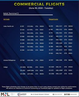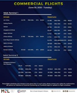 (Eagle News)–The Manila International Airport Authority has released its list of operational commercial flights.