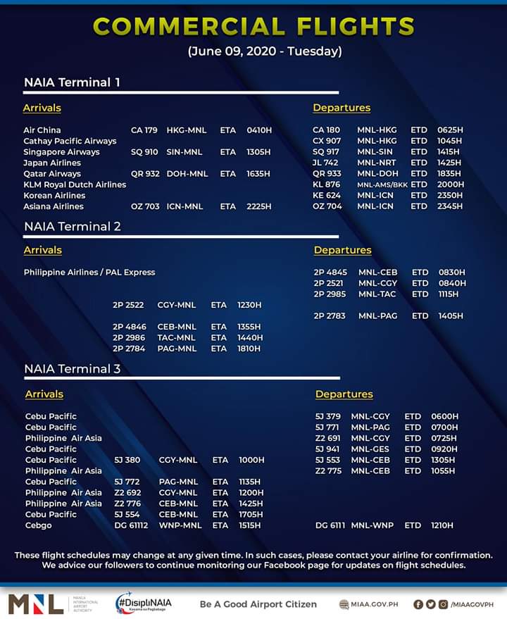 (Eagle News)–The Manila International Airport Authority has released its list of operational commercial flights.