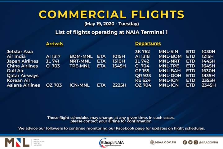 (Eagle News)–The Manila International Airport Authority has released its list of operational commercial flights.