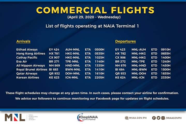 (Eagle News)βThe Manila International Airport Authority has released its list of operational commercial flights.