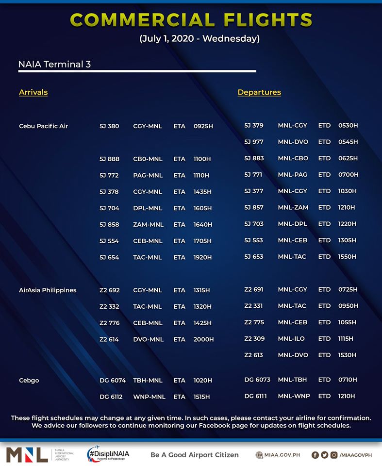 (Eagle News) — The Manila International Airport Authority has released its list of operational commercial flights.