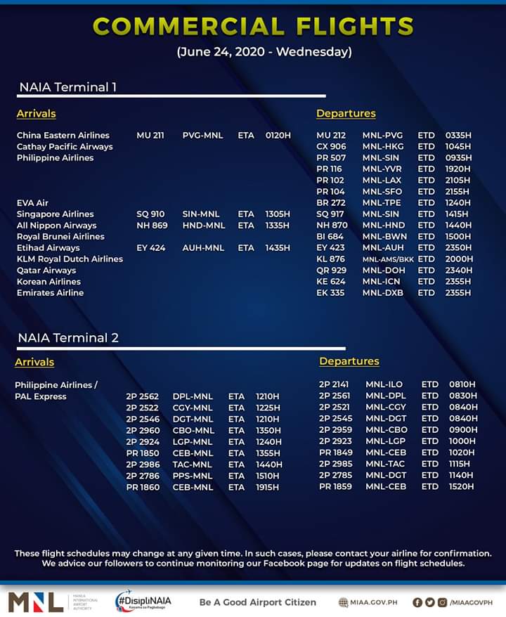 (Eagle News)–The Manila International Airport Authority has released its list of operational commercial flights.