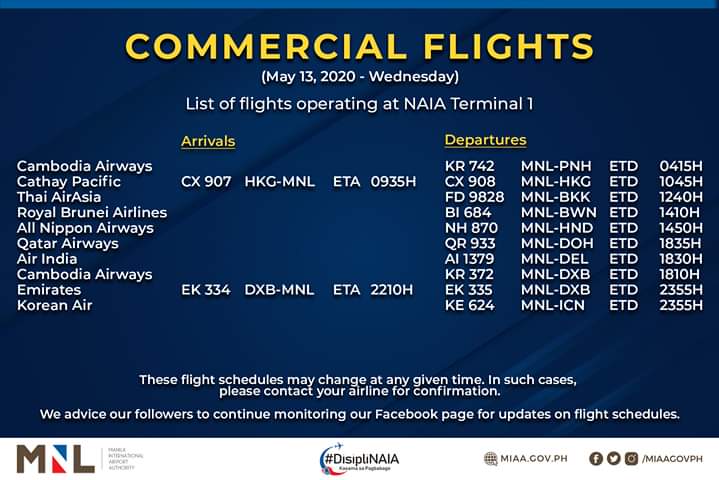 (Eagle News)–The Manila International Airport Authority has released its list of operational commercial flights.