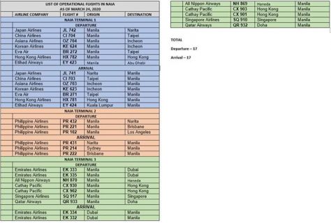 (Eagle News)–The Manila International Airport has released its list of operational flights amid the enhanced community quarantine in Luzon.