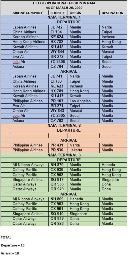 (Eagle News)–The Manila International Airport Authority has released its list of operational flights.