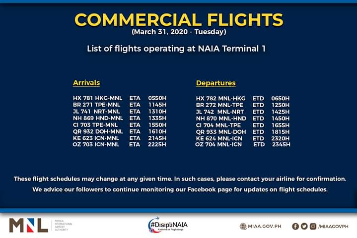 (Eagle News)–The Manila International Airport Authority has released its list of operational flights.