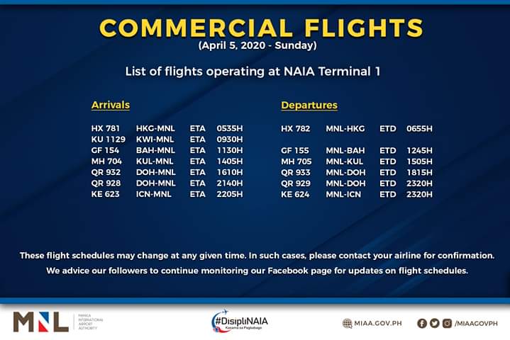 (Eagle News)–The Manila International Airport Authority has released its list of operational flights.