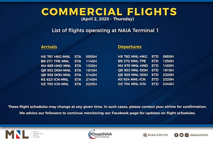 (Eagle News)–The Manila International Airport Authority has released its list of operational flights.