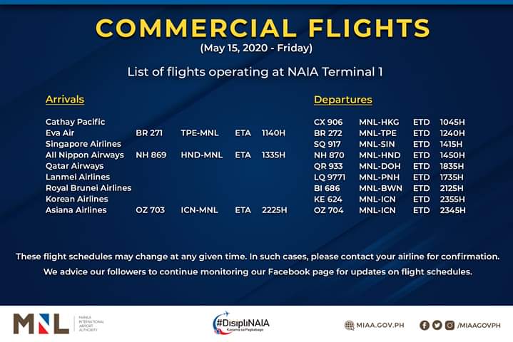 (Eagle News)–The Manila International Airport Authority has released its list of operational commercial flights.