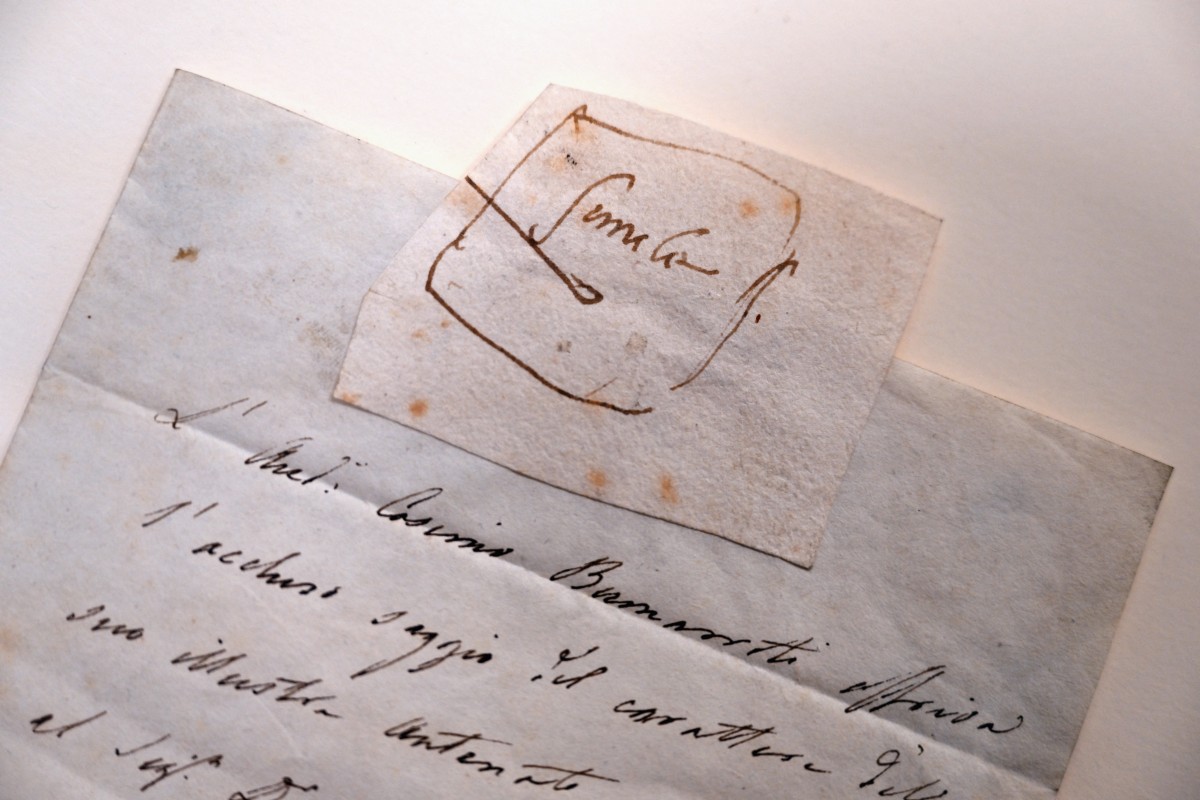 The drawing is coupled with a letter written by Cosimo Buonarroti in 1836, in which he offers the piece by his “illustrious forefather Michelangelo” to Sir John Bowring, the future governor of Hong Kong, whose signature appears at the bottom of the sheet.