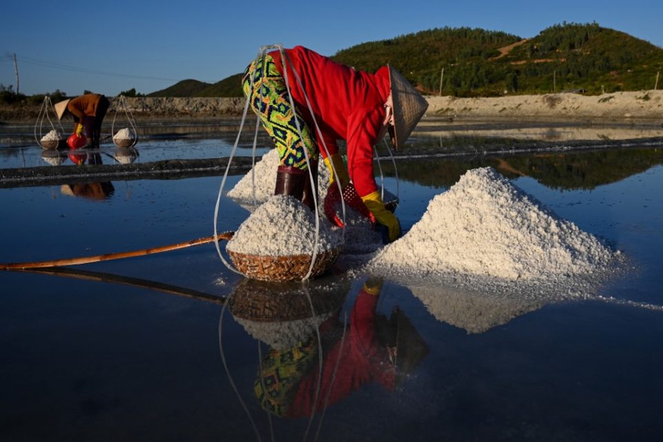 HON KOI, Vietnam (AFP) — The salt farmers of Hon Khoi rise before dawn as they have for generations, fanning out across shallow seawater pools in southern Vietnam to harvest the precious mineral, hoping for a better season than the last.