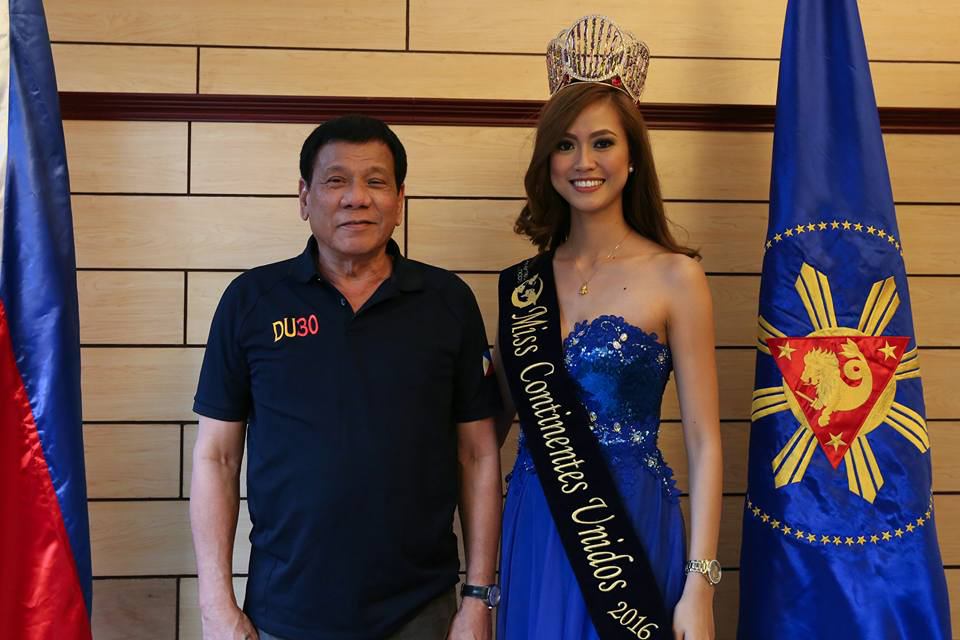 DAVAO CITY (Eagle News) – Nakipagkita si “Miss Continentes Unidos” – Filipina Winner Jeslyn Santos kay Pangulong Rodrigo Duterte sa Matina Enclaves, Davao City noong Sabado, December 3. Si Santos ang kauna-unahan at nag-iisang Asian na nagwagi sa Miss Asia Pacific International 2016 na ginanap sa Equador nitong September 2016.