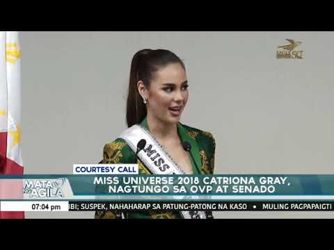 (Eagle News) – Miss Universe 2018 Catriona Gray paid separate courtesy calls to the Office of the Vice President, the Senate office, and the Department of Tourism on Tuesday, February 26, as she vowed to continue to represent and promote the Philippines to the world to the best of her abilities.