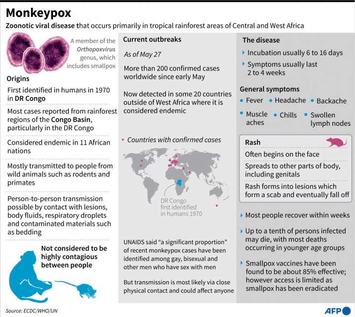 Since Britain first reported a confirmed monkeypox case on May 7, nearly 200 cases have been reported to the UN health agency in countries far from the states where the virus is endemic.