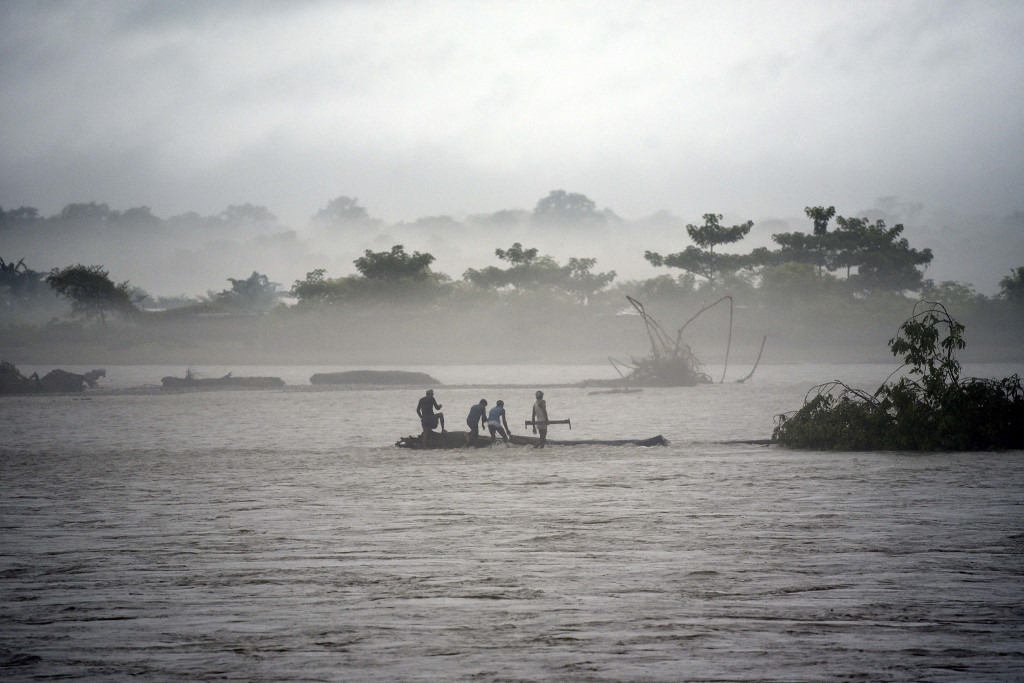 Photos showed residents crammed in boats carrying their belongings to safer areas in Morigaon, one of the worst-affected districts, and just the roofs of submerged homes above water.