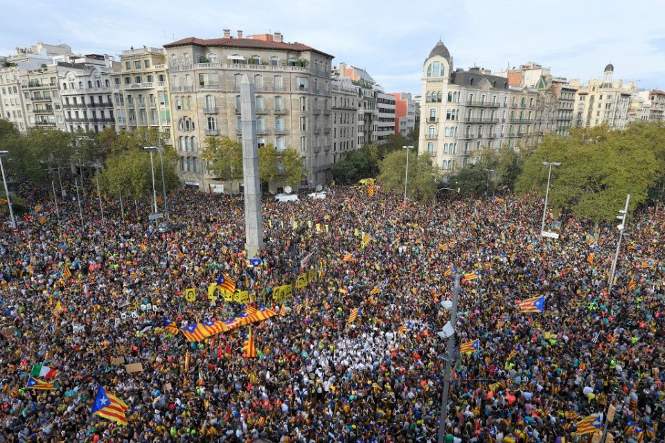 Around half a million people had rallied in Barcelona on Friday in the biggest gathering since Monday’s court ruling as separatists also called a general strike in the major tourist destination.