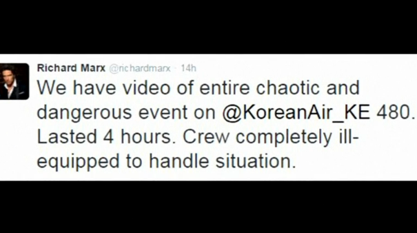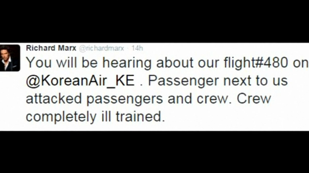 Musician Richard Marx on Tuesday (December 20) posted tweets and photos on his Twitter page about helping subdue an unruly passenger on board a Korean Air flight from Hanoi, Vietnam to Seoul, South Korea.