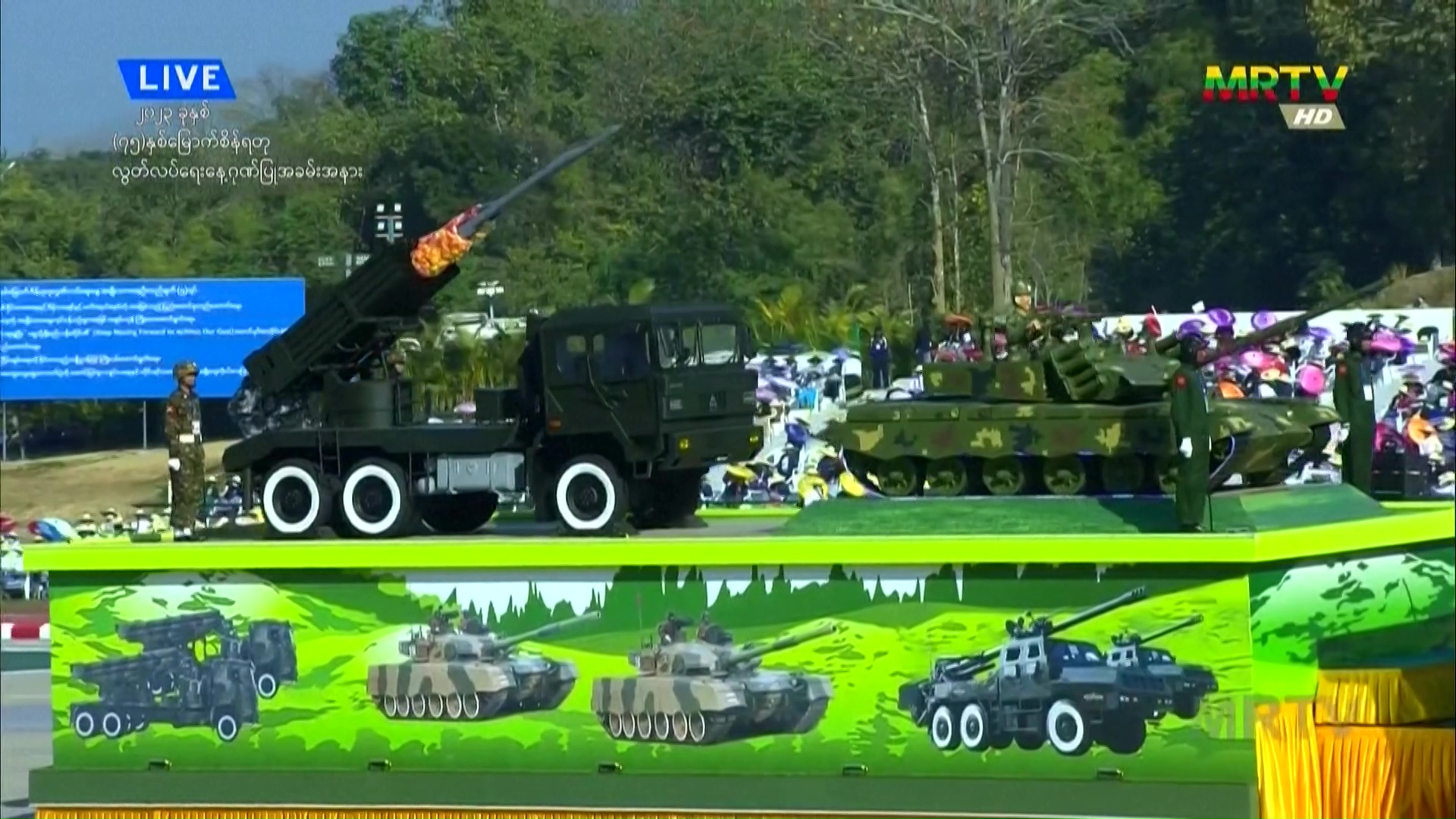 Tanks, missile launchers and armoured cars rolled through the dawn air to a parade ground in the capital Naypyidaw, AFP correspondents said, kicking off a military display marking 75 years since Myanmar gained independence from Britain.