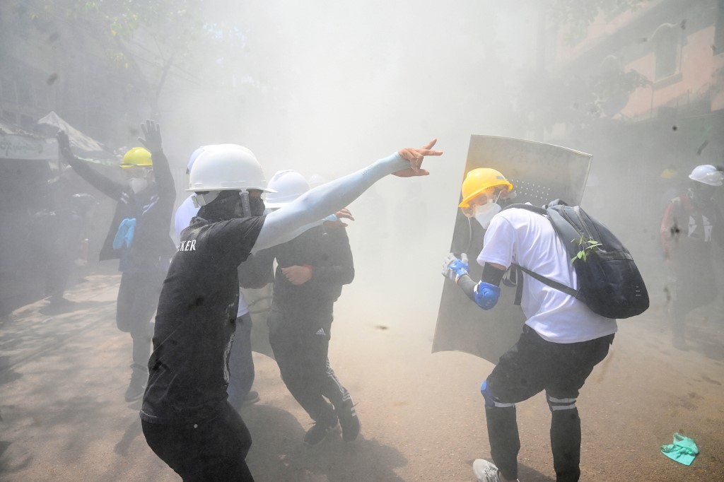 “Police and soldiers started clearing off Kyuntaw Road in Sanchaung township. They used sound bombs to stop protesters gathering,” a resident told AFP.