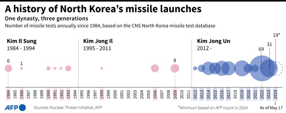 North Korea is barred by rafts of UN sanctions from any tests using ballistic technology, but its key ally Russia used its UN Security Council veto in March to effectively end UN monitoring of violations, for which Pyongyang has specifically thanked Moscow.