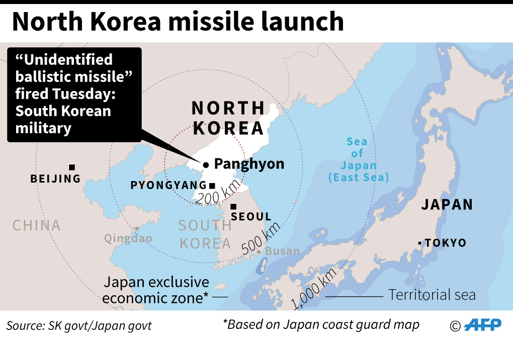SEOUL, South Korea (AFP) — North Korea launched a ballistic missile Tuesday as the United States prepared to mark its Independence Day, triggering a Twitter outburst from President Donald Trump who urged China to “end this nonsense once and for all.”