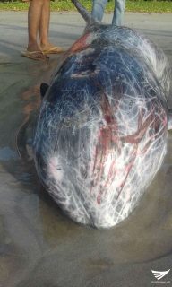 Ito ay kinakitaan din ng mga sugat mula sa iba’t ibang bahagi ng katawan na maaaring bunga ng pagkasadsad nito sa buhangin.