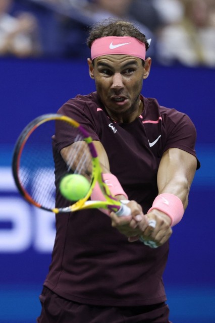 Rafael Nadal of Spain plays a backhand against Fabio Fognini of Italy during the fourth set of their Men’s Singles Second Round match on Day Four of the 2022 US Open at USTA Billie Jean King National Tennis Center on September 01, 2022 in the Flushing neighborhood of the Queens borough of New York City. (Photo by MATTHEW STOCKMAN / GETTY IMAGES NORTH AMERICA / Getty Images via AFP)