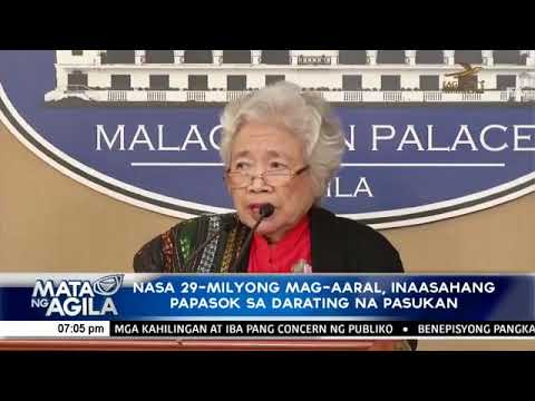 Ayon kay Education Secretary Leonor Briones, nasa 29 milyong mag-aaral ang inaasahang papasok sa pagbubukas ng pasukan sa susunod na buwan.