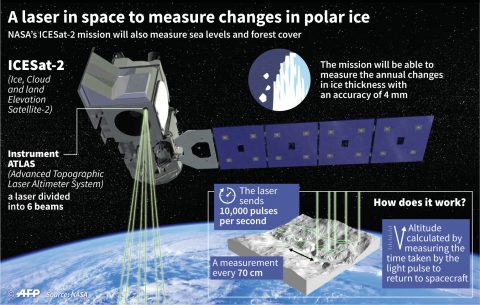 TAMPA, United States (AFP) — NASA is poised to launch Saturday its most advanced space laser ever, ICESat-2, a $1 billion dollar mission to reveal the depths of the Earth’s melting ice as the climate warms.