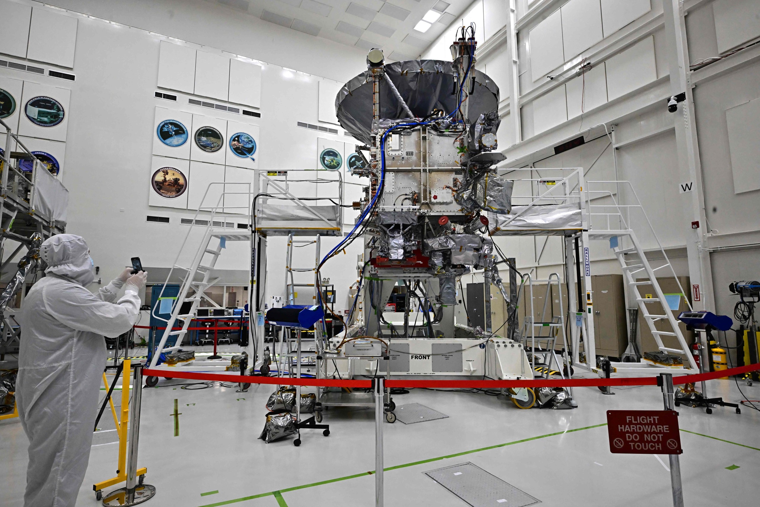 The $5 billion probe is currently at NASA’s Jet Propulsion Laboratory in California, sitting in a “clean room” — a sealed area only accessible to people wearing head-to-toe covering.