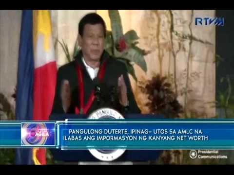 (Eagle News) – President Rodrigo Duterte has given the Anti-Money Laundering Council (AMLC) the green light to give all information regarding his net worth, in the face of allegations made by Senator Antonio Trillanes IV that he was keeping P2.2 billion in bank accounts.