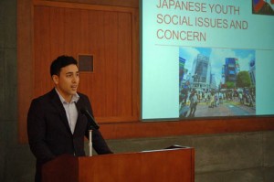 Opening the program was JICC Director Mr. Tatsuo Kitagawa, who lauded the long-running success – over four decades so far– of SSEAYP and stressed the importance of such a venture in promoting mutual understanding among countries of the ASEAN and Japan in his Welcome Remarks. This was followed by words of encouragement from 42nd SSEAYP National Leader Professor Alfredo Diaz. Also present was JICC Researcher/Adviser Mr. Simon Kubota who led a lecture on Japanese youth social issues. Japanese social practices, customs, and culture were also discussed. The program ended with Closing Remarks by Minister and Deputy Chief of Mission of the Embassy of Japan Mr. Tetsuro Amano. In his message, Minister Amano highlighted the pivotal role of the youth in nation-building and development.