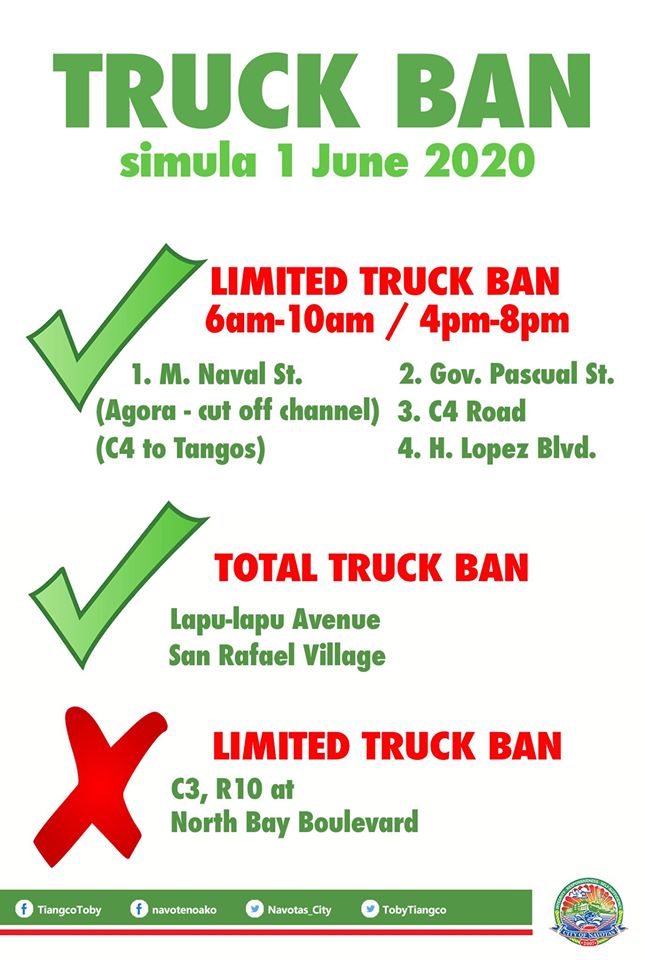 (Eagle News) — The Navotas government has announced its truck ban policies, as Metro Manila shifts to a general community quarantine on Monday, June 1.